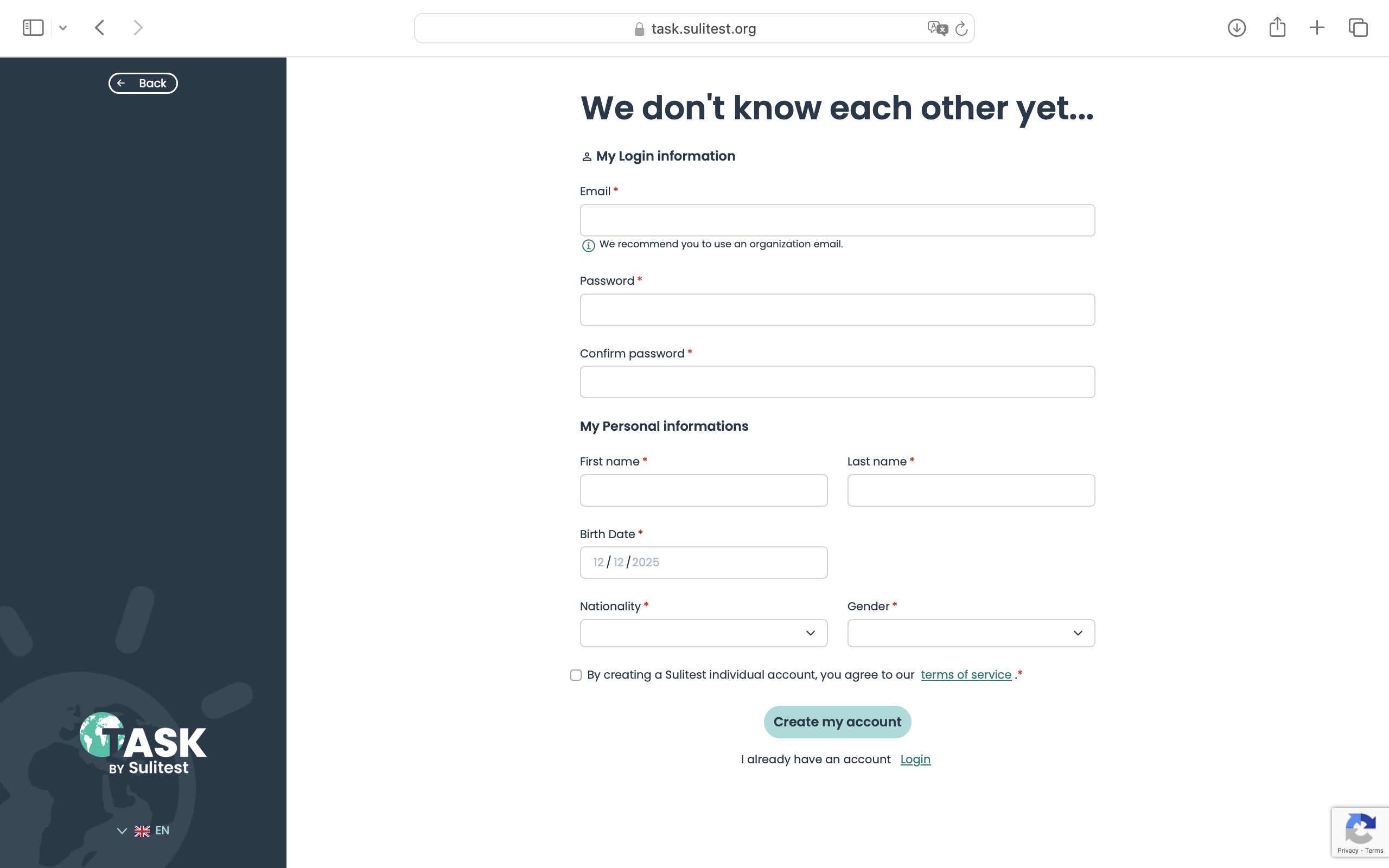 Signing up for TASK depends on whether you are a student/candidate or an institution/administrator. Follow the instructions below based on your role.