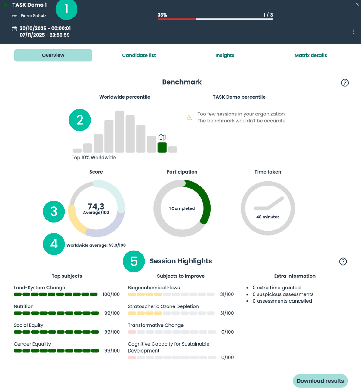 This guide helps moderators and educators interpret the results of a TASK™ session. It is designed to provide insights into student performance, highlight strengths and gaps, and support curriculum improvement in sustainability education.